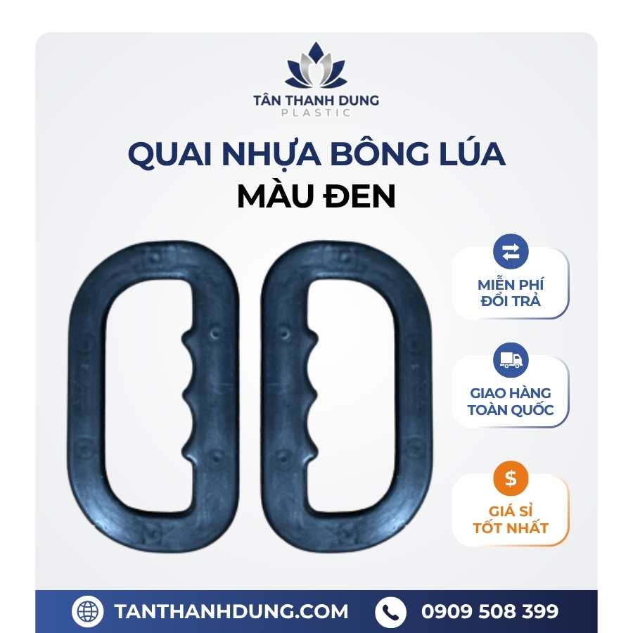 Quai Nhựa Xách Bao Gạo Bông Lúa Cao Cấp – Màu Đen