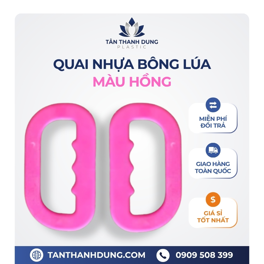 Quai Nhựa Xách Bao Gạo Bông Lúa Cao Cấp – Màu Hồng