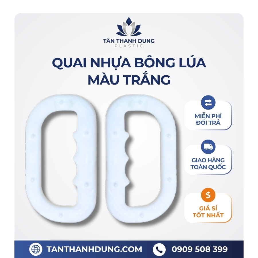 Quai Nhựa Xách Bao Gạo Bông Lúa Cao Cấp – Màu TRẮNG